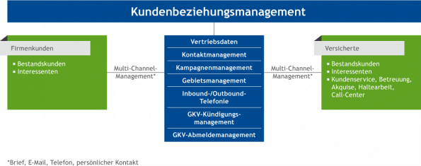 Das Customer Interaction Center (CIC) integriert alle Kontaktwege vom und zum Versicherten. Dabei lassen sich nicht nur Telefonate, sondern auch Briefe, Faxe, persönliche Gespräche oder E-Mails erfassen. Es stellt eine Plattform für ein übergreifendes Handling aller Kommunikationskanäle (so-genanntes Multi-Channel-Management) dar. Gleichzeitig bildet es eine integrierte Absprungoberfläche zu den Fachsystemen wie das Leistungsmanagement oder auch den Beitragsbereich.