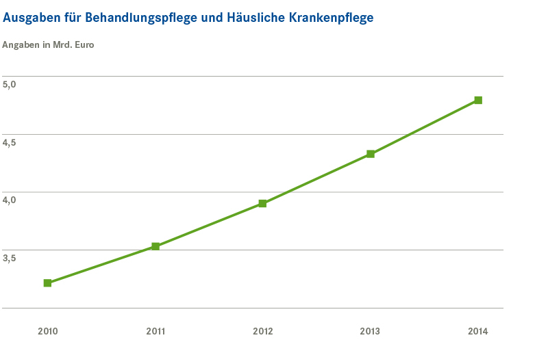 In oscare® existiert die Möglichkeit, dass Dienstleister von Pflegediensten über eine zertifizierte Schnittstelle Verordnungen der Häuslichen Krankenpflege inklusive des Images maschinell anliefern können. Dies ist eine deutliche Erleichterung und spart Erfassungsaufwand. Abgerundet wird die Lösung mit den neuen Möglichkeiten der Autogenehmigung. Nach prozessspezifischen Anforderungen können Kassen festlegen, welche Fälle regelhaft und gleichartig genehmigt werden sollen, damit die Sachbearbeiter sich auf die wichtigen Fälle konzentrieren können. Ein weiterer Schritt in die Digitalisierung und Automatisierung von Prozessen. Die folgende Grafik belegt die Bedeutung der Häuslichen Krankenpflege im Ausgabenkontext der GKV. Die Bedeutung und wie wichtig das Thema für einen Bereich wie die Häusliche Krankenpflege ist, sieht man an den Zahlen.