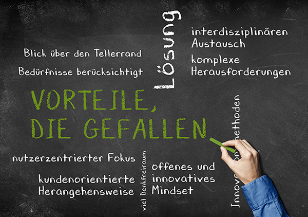 Die gemeinsame Kollaboration in dem Forschungs- und Erprobungslabor der AOK Systems bietet viele Mehrwerte. Ein nutzerzentrierter Fokus und die kundenorientierte Herangehensweise führen zu einem Produkt, welches immer den Sachbearbeiter in der Kasse und den Versicherten mit seinen Bedürfnissen berücksichtigt und in den Mittelpunkt stellt. Ein offenes und innovatives Mindset ist davon geprägt, viel Denkfreiraum zu haben, parallel auf mehreren Spuren gleichzeitig unterwegs zu sein und Neues, Altes, Ungewöhnliches und vielleicht auch Überraschendes mit Know-how und Erfahrung zu verknüpfen. Grenzen und Beschränkungen sind aufgehoben, damit die Ideen frei fließen können. Einen interdisziplinären Austausch nennt man auch fächerübergreifende Arbeitsweisen. Zur Verdeutlichung: Kommen mehrere Menschen aus diversen Fachrichtungen oder mit unterschiedlicher Expertise zusammen, ist der Blick über den Tellerrand einfacher. Dies ist gerade bei der Lösung von komplexen Herausforderungen von großem Vorteil. Die AOK Systems bedient sich aus einem Portfolio unterschiedlicher, inspirierender Innovationsmethoden. Diese müssen für die Problemstellung oder Herausforderung geeignet und einfach sein.