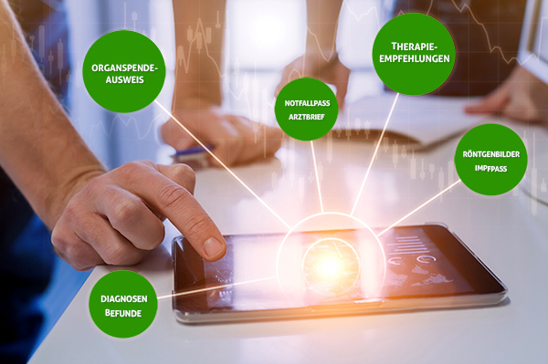 In der ePA sind vom Leistungserbringer bereitgestellte Diagnosen, Befunde, Therapieempfehlungen sowie Röntgenbilder etc. abgelegt. Darüber hinaus sind auch Erfassungen vom Versicherten enthalten, die Kommunikation wie z. B. ein Arztbrief, aber auch Notfallpass, Organspendeausweis oder Impfpass.